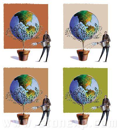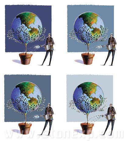 暖色比較含蓄,自然,熱情,適合環保的主題,注意在褐色的對比下地球更現突出了。