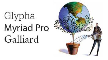 Galliard屬于一種羅馬字體,其細節處呈現一種鑿刻感,并有尖銳的角度感及略帶些浮夸的襯線設計。其粗細分明的字母線條使到Galliard字體非常容易閱讀,雖然其過多的細節處理有時讓人感到有點厭倦。字母比例適中,其字體家族具有多種粗細的線條,另外,這種字體看起來象樹葉!正是我們的最終選擇。