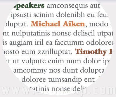 左邊的文字段落,兩邊并沒有對齊,交錯的邊緣很自然。演講者的名字用加粗的字體,顏色也是從地球的顏色中挑選出來的,很醒目,同時整個段落有了圖畫的紋理,可以說兼顧了形式和功能。