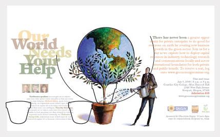 在圖形上方簡單設置一行題目很簡單,不過這看起來比較平淡,和圖形不太協調。相反,如果我們用比較粗的字體,把文字重疊起來,再配合地球上選取的顏色,這樣就建立了某種視覺上的聯系。如果把文字放在地球旁邊,這種聯系就更強了。