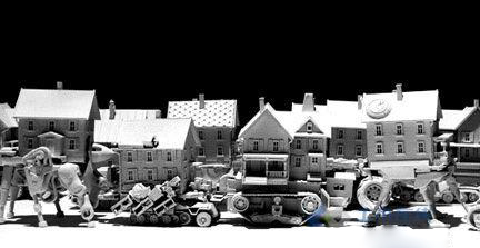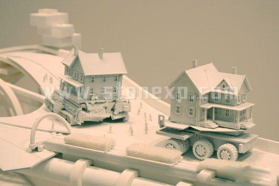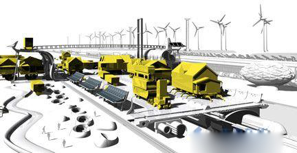 “在路上”是Mitchell Joachim領導Terreform 1 設計的一項概念建筑作品。該項目關注城市如何可持續地擴展到郊區。設計概念是給郊區住宅配上輪子,使他們能夠白天進城夜晚返回。在這種情況下,城市公路應該由智能化基礎設施系統所更新,以便滿足這些帶有輪子房子的使用。