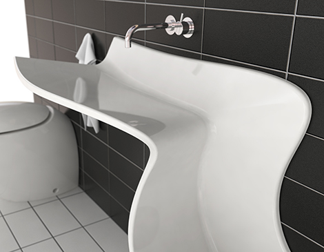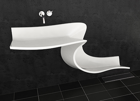 “Abisko 臉盆”是一個全新的概念,為現代生活方式,靈感來自未受污染的瑞典瀑布國家公園Abisko。無法聚集大量的水,也沒有下水管道,水直接流入下水道,這過程就像瀑布一樣,在現代生活中感受自然。