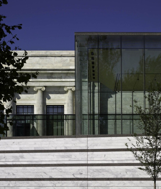 為期七年的擴建和更新工程中,Rafael Vinoly的東附樓是一個亮點,目的是將原有的建筑像“寶石”一樣設置在連續的擴建空間中。東附樓面積13.92萬平方英尺,連接了博物館在1916年由當地事務所Hubbell&Benes設計的老樓以及1971年由Marcel Breuer設計的建筑,為美國頂尖的百科類藝術博物館提供了新的展示和保存空間。