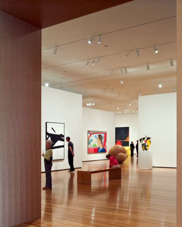 雙層特展空間和一座入口大廳位于較低的樓層,也是東附樓的主要部分,而展示現有藏品的新展區位于二層。新附樓還在一層設置了辦公室和保護收藏品的工作間。
