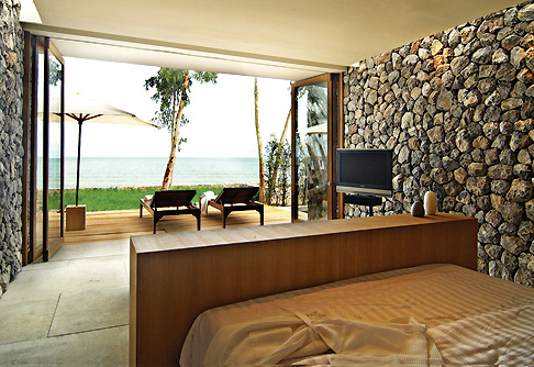 坐落于泰國灣海濱,X2度假村豪華,踏實,高檔。該度假村是為了協調漁村及其周圍地區原狀綠化和安寧的,使客人欣賞風景和品嘗美食的同時,享受奢侈的度假生活。為此,X2布局寬敞,方便客人游覽周圍的環境。常見的設施包括大型游泳池,水療中心,“4K”融合菜式餐廳,深夜酒吧和屋頂露臺,可俯瞰海灣閃閃發光的水域。整個度假村照明是柔軟的,隱藏的,所以一切都是令人驚奇的,不明顯的道路照明。所有23間私人別墅配有露臺,花園和游泳池。別墅墻壁是由當地開采的石礦和石頭打造。這個無形的設計,使得私家別墅不受圍墻或籬笆隔離。室內落地玻璃門,干凈,樸素的家具,顏色以光滑的黑色,白色和灰色為主,增加了度假村謙遜的氣氛。X2 Kui Buri位于泰國灣,從曼谷出發大約3小時的車程,途經著名的Hua Hin和Pranburi度假小鎮。