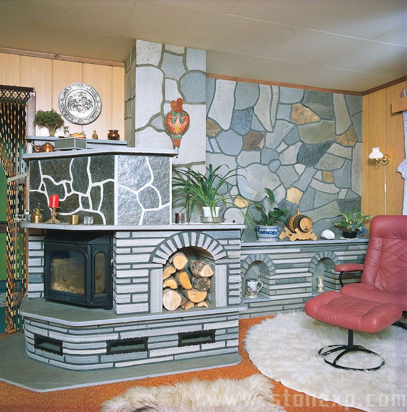 天然板巖壁爐