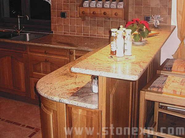 簡單描述:此組石材臺面板造型簡潔實用,弧板的弧度大,加工難度高,弧板流暢的曲張則使吧臺更富個性時尚特征。