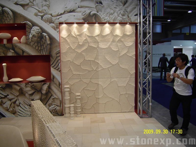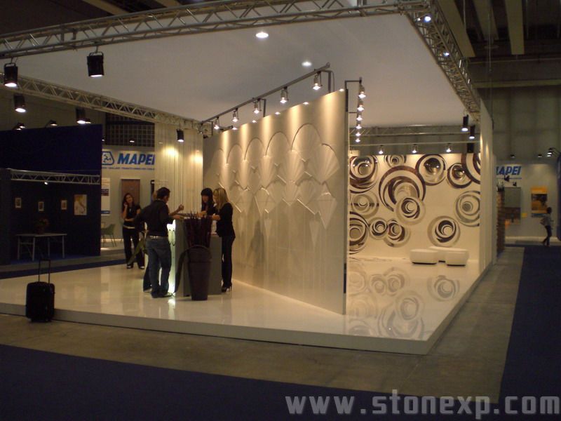 簡單描述:此組圖片為意大利石材展中由各種各樣的特色表面制作成的石材背景墻,個性獨特,吸引參觀者的眼球,同時很好的展現各個公司的品牌形象。