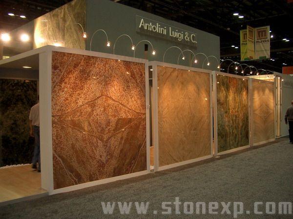 天然特色石材色彩斑斕,豐富多彩,紋路奇特,富有內涵及獨特韻味,是高檔裝修必不可少的材料,且特色石材以其獨特的半寶石和石英巖材質突顯尊貴及珍希。下面是一組國外石材展覽會上的天然特色石材大板欣賞。