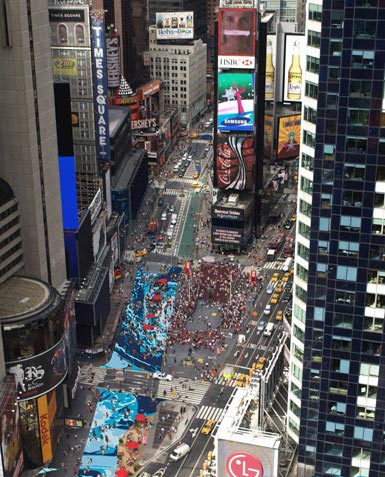 該方案計劃在7月中旬布置,陳列18個月。之后,景觀設(shè)計專家和建筑師、工程師等將為時代廣場設(shè)計新的道路陳設(shè)和地下基礎(chǔ)設(shè)施等,并改變時代廣場周圍的道路。永久性廣場改造計劃將在2012年開始進(jìn)行。