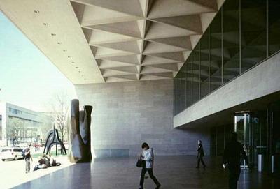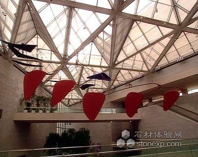 陽光透過蜘蛛網(wǎng)似的天窗,從不同的角度射入,自成一幅美麗的圖畫。這座費(fèi)時十年,耗資近億美元建成的「東館」,被譽(yù)為“現(xiàn)代藝術(shù)與建筑充滿創(chuàng)意的結(jié)合”。