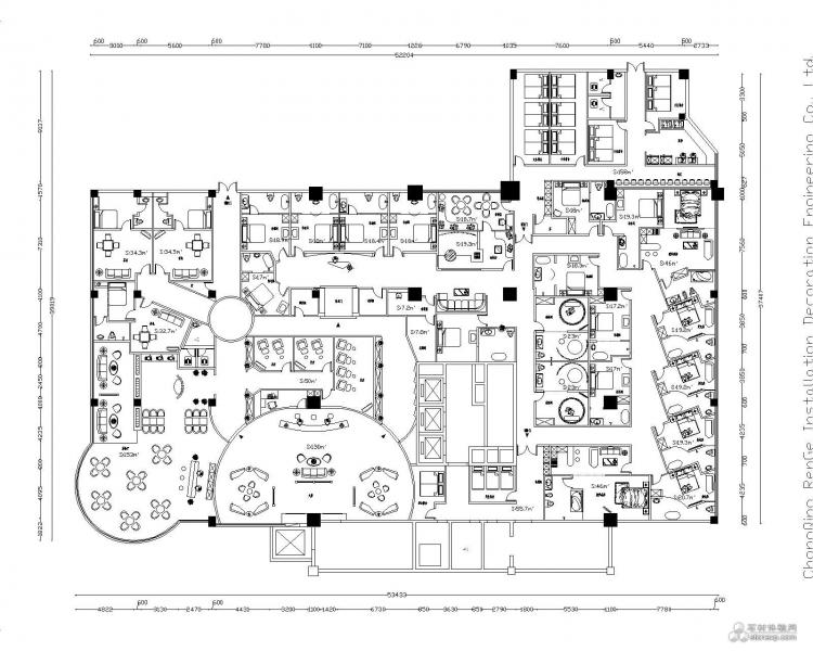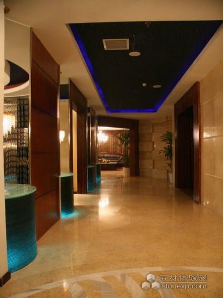 本案著重用藝術手段打造流暢恬適的休閑娛樂空間,用主題文化營造環境,將“潛龍騰淵”的主題貫徹在其中,旨在營造舒適的休閑環境與獨特的文化氛圍。會所大堂占地約140平米,地面如水紋的石材拼花與天花上寫意的行云浮雕正構成海天對比,在其中的金龍正欲騰空而起,彰顯尊貴與典雅,也預示著新的行業風向標正欲崛起。左右兩邊與大堂風格一脈相成的過廊將視野分入兩個不同的主題區域,左邊是約400平米的商務休閑區,茶樓、機麻、足療盡在其中。獨立私密且隔音良好的商務機麻包房,放松身心的足療包房都可直通茶樓大廳,以城市白領及以上高知型客戶為目標,針對商務洽談帶簡餐茶歇的功能為設計主體,打造成相對獨立且適合消費群體需要的文化空間。右邊是約700平米的洗浴、保健區,在霓虹燈陣所組成的過廊里“幻”的寓意融會其中,給即將步入如夢幻般唯美的特色空間以指引。