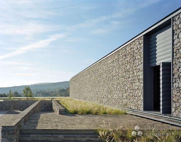 這個(gè)建筑就如同一個(gè)巨大的石碓,石碓中部被掏空以形成一個(gè)開闊的空間。這一壯闊的景象為山體增添無(wú)限魅力。一個(gè)巨大的斜體網(wǎng)格被設(shè)置在建筑的主核區(qū),以此喚起一種文藝復(fù)興時(shí)期透視圖的效果,還能扭曲和強(qiáng)調(diào)周邊景觀。