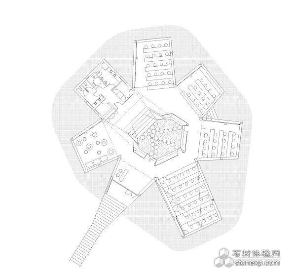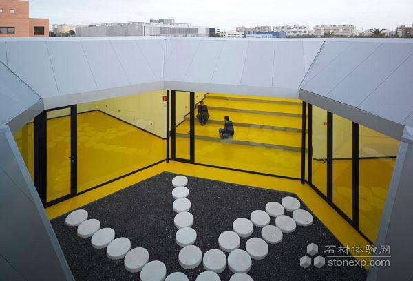 西班牙校園媒體館坐落在大學校園中心,是一個可使用wifi的媒體展示館。提供公共互聯網接入,并可用作會議場所,可以讓學生活動和休息。5個展區星形布置,環繞中央庭院,確保最好的自然采光和通風。