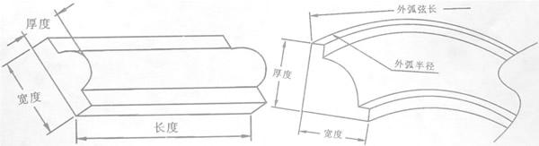 6.1.1 花線的長度、寬度、厚度用分度值為1mm的鋼直尺或鋼卷尺測量,長度應分別測量兩長邊,寬度和厚度應分別測量兩端端面,見圖1和圖2,分別用偏差的最大值和最小值表示長度、寬度、厚度的尺寸偏差,讀數精確至0.5mm。