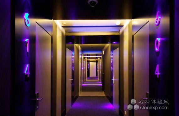 西班牙設計師Capella在巴塞羅那為這家酒店設計了室內外的空間,并且利用斜線來裝飾整個空間布局,正如意大利的比薩斜塔一樣,給人以一種傾斜的視覺感受。