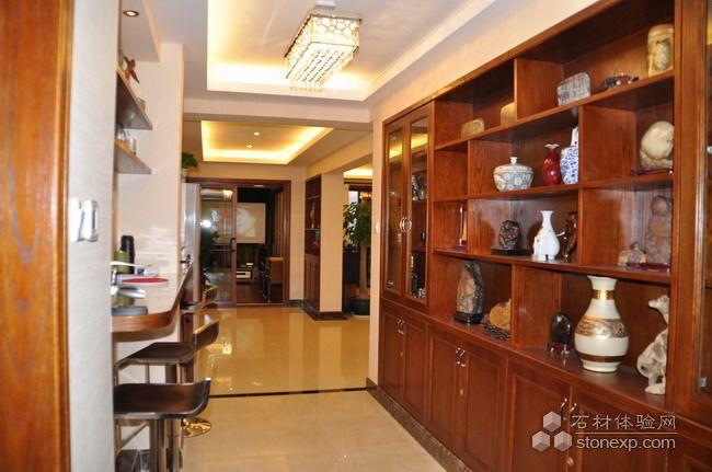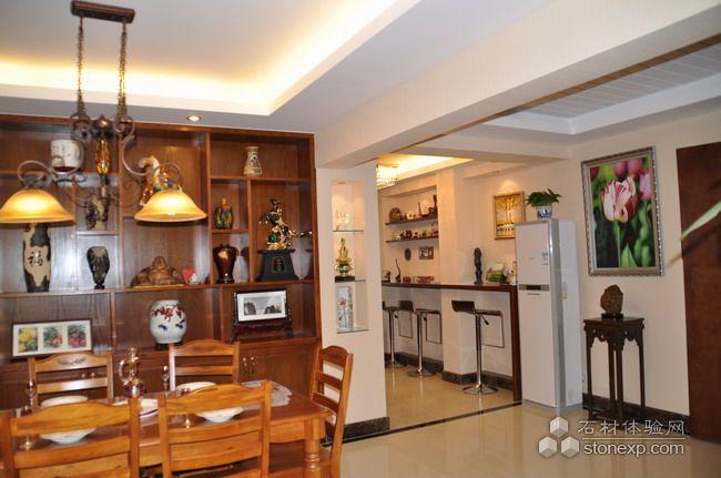 細節處同樣注重中西元素的表達,輕松歡愉而又蘊涵深深的韻味,享待細品。多款組合家具與獨立家具,取精致典雅實木家具之神韻,轉用時尚吧臺椅與水晶燈配合,或處以溫馨色彩的裝扮,模樣相似卻更為簡結溫馨,貼合古典懷舊的整體空間感覺。露原木紋飾面上的吉祥裝飾品,迷亂中是規則的鋪設,祥和的燈光下,是溫暖的福佑,細細品味,讓人歡喜并為之雀躍。另外,在休閑空間多用紅花綠草之類的植物,保持房間的自然氛圍。
