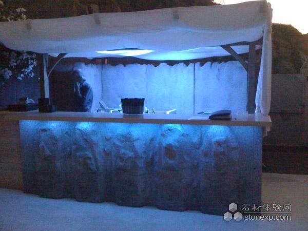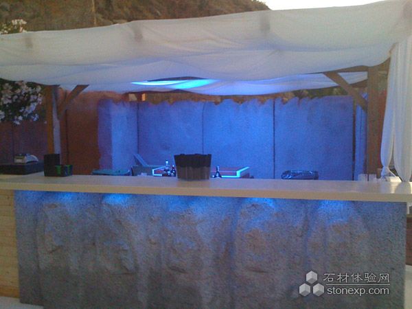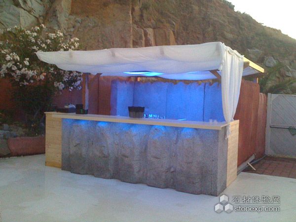 簡單描述:此石材吧臺應用了剁斧面工藝,隨意的工藝加工卻有鬼斧神工之妙,加上柔和的燈光效果,使得一切看起來都那么完美。