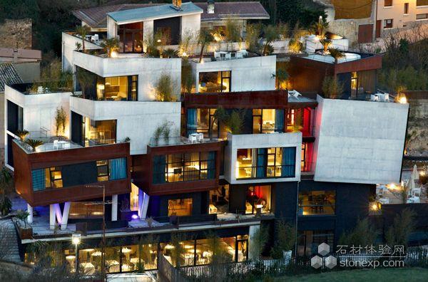 這座造型非常獨特的四星級酒店(Hotel Viura)位于西班牙盛產葡萄酒的里奧哈阿拉韋薩(Rioja Alaves),是一個有26間標房和7間套房、兩間酒吧及餐廳的新酒店。由西班牙設計公司Designhouses設計。