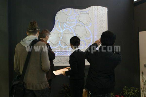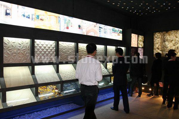 石材工程專家”的品牌定位,并通過特色品種燈片展示為品牌定位給予實質性支撐。在設計細節上運用柵欄、別具風格的墻面設計等元素充分吸引客戶眼球。