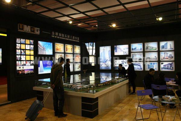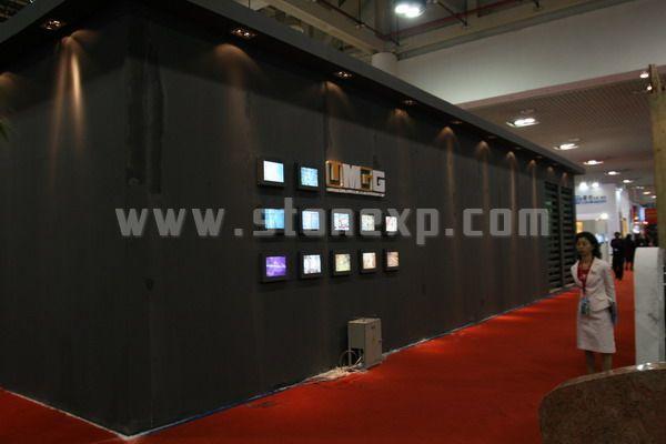展廳整體風格采用純黑色的主色調風格,搭配金色的企業標識,高貴但不張揚,體現出一個大企業沉穩的風范。展廳外圍的整體綜合形象展示,在展館眾多展廳中獨樹一幟,讓人眼前一亮,吸引客戶,聚攏人氣。