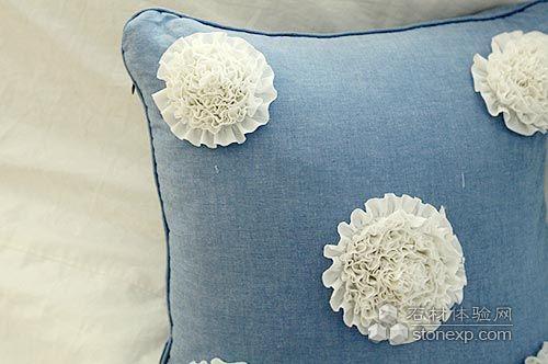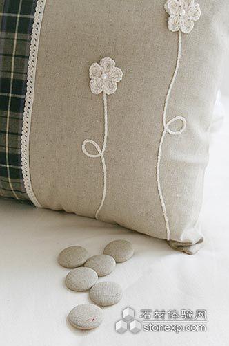 質地清爽的亞麻,用簡單的五瓣小花裝飾,不會顯得過于繁瑣而失去了田園的韻味。相反這一處小小的裝飾,讓整款抱枕更具情趣。