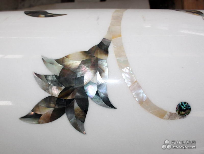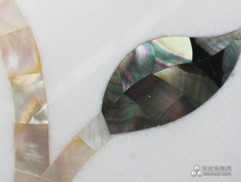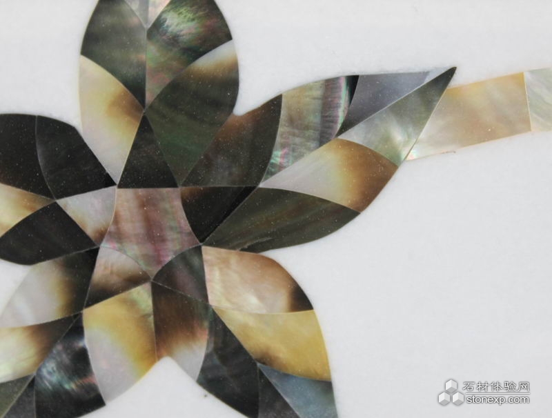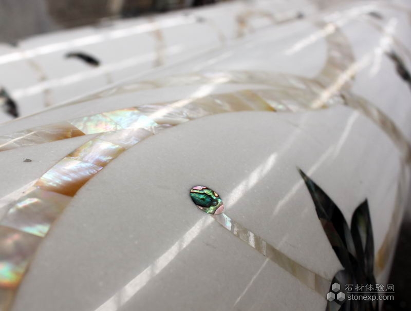簡單描述:此為實心柱貝殼拼花,將寶石類材質貝殼與天然石材完美結合在一起,此工藝為環球石材集團首創,并獲得國家專利。