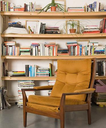 其他搭配:金色實木休閑椅+隨意隔板書架