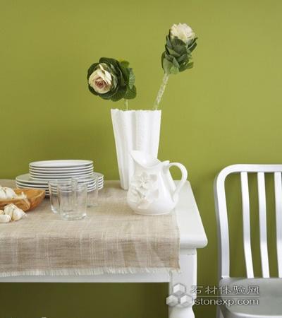 對于空間有限的小戶型來說,非就餐時間的餐桌邊就是不錯的思考空間。自然氣息濃郁的綠色墻壁能幫你沉靜下來,白色花瓶的裝點讓你思考時也有美麗的視野。而白色的餐桌可以根據你的需要隨時變身成書桌。