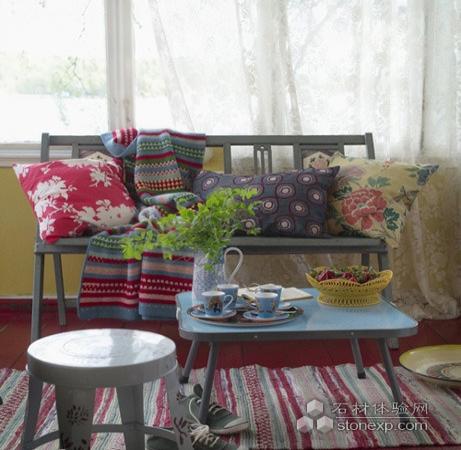 其他搭配:純白布藝休閑椅+彩色條紋靠墊