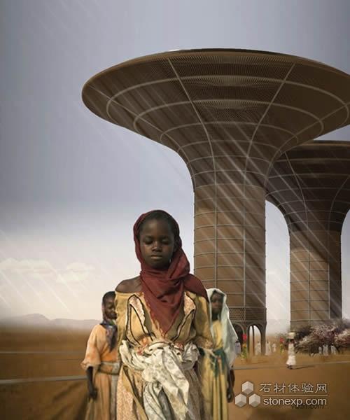 H3AR建筑設計事務所的波蘭籍建筑師Hugon Kowalski最近提出了一個建筑方案,新建筑可以借助水泵抽取地下水。該建筑的形式受到水塔和當地非洲草原的象征-猴面包樹的啟發。建筑物容納了一些水泵、處理設備,甚至于醫院、學校和糧食貯備中心。