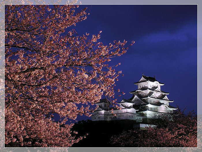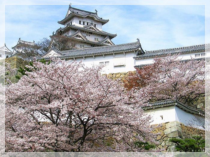姬路城,城堡建造在海拔45.6米的姬山之顛,主要城郭(天守閣)高31米,城堡外形好似一只高雅的白鷺,所以又稱白鷺城,是日本現存的古代城堡中規模最宏大,風格最典雅的一座代表性城堡。春天有姬路城賞櫻會“花見太鼓”、千姬牡丹節,夏天有姬路“港口節”,秋天有姬路城賞月會,冬天有姬路全國陶器展等,一年四季游客不斷。