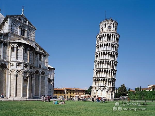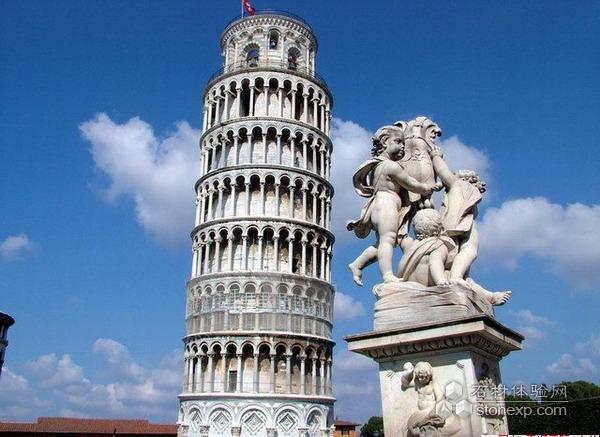 意大利 比薩斜塔,位于意大利托斯卡納省比薩城北面的奇跡廣場上。始建于1173年,設計為垂直建造,但是在工程開始后不久便由于地基不均勻和土層松軟而傾斜,1372年完工,塔身傾斜向東南。比薩斜塔是比薩城的標志,1987年它和相鄰的大教堂、洗禮堂、墓園一起因其對11世紀至14世紀意大利建筑藝術的巨大影響,而被聯合國教育科學文化組織評選為世界遺產。