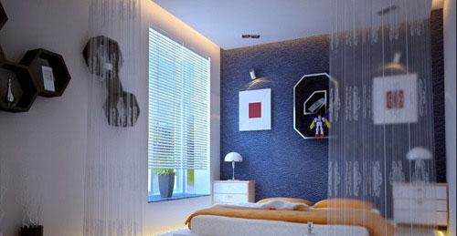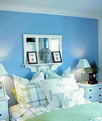 清爽的藍色在炎炎的夏日里最受歡迎,床頭對稱的裝飾畫簡約素雅,在藍色背景墻的襯托下,更加清爽新鮮。走進這樣的房間,會讓你頓覺眼前一亮,感受舒適自然的時光。