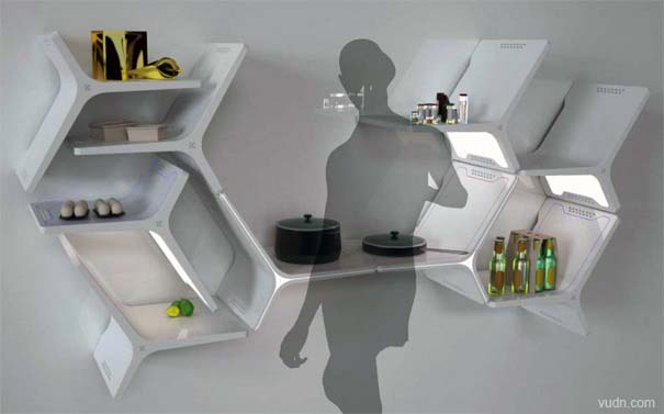 這是一種壁掛式的廚房用具系列,從冰箱,空調,照明和烹飪模塊,你都可以隨意添加或選擇你喜歡的家庭適合模塊。每一個都是互不干擾的獨立模塊,但是看起來就像是一個網絡版塊,效率與華麗同在。