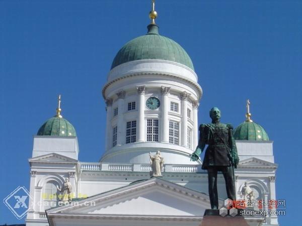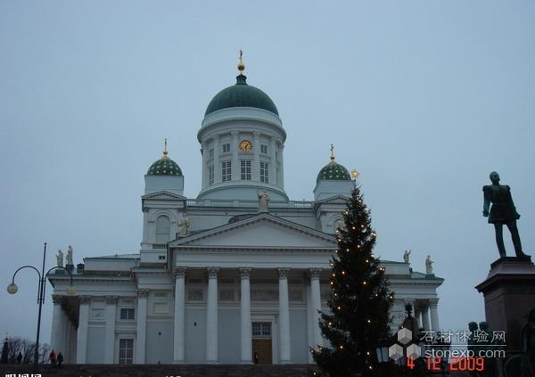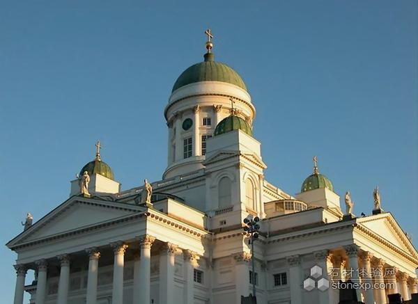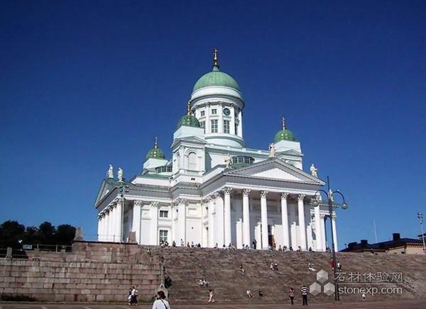 芬蘭 赫爾辛基大教堂,建于1852年,出自德國建筑師恩格爾之手。一眼望去,希臘廊柱支撐的乳白色教堂主體和淡綠色青銅圓頂的鐘樓十分醒目,宏偉的氣勢和精美的結構使其成為芬蘭建筑史上的經典,也成為赫爾辛基市的地標性建筑。芬蘭情侶都希望在這里舉行婚禮,為此甚至需要提前一年半預約。而北歐最好的大學之一——赫爾辛基大學的神學院畢業典禮,每年也都選擇在這里舉行。