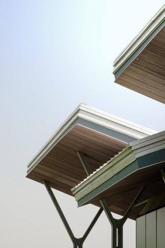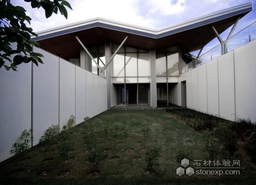 關于這個房屋,一系列東西走向的平行墻面制造出許多不同面積的照明充足的空間。它們的朝向和邊角處理制造出既積極又被動的氣候控制:景觀庭院,隱蔽的玻璃立面和陽臺,電動遮陽板等都是為專門應對新德里冬夏的惡劣天氣而設置的。