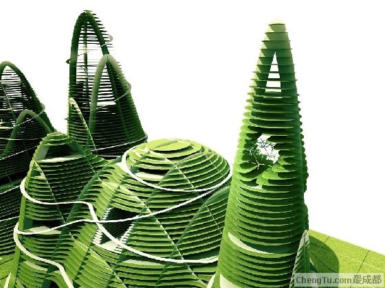 由幾座金字塔形的建筑群組成的“千禧未來城”,底部是富饒的綠地和農(nóng)場,合理運用的內(nèi)部空間,使得建筑群包含了生活,教育,辦公,娛樂,購物等多方面具有前瞻性的社會用途。