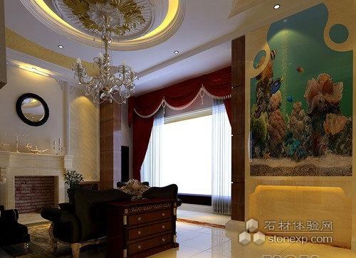 本案例為歐式古典風格,根據住房風水,進門放置了“高大”魚缸,整體設計突顯歐式古典風格,讓人體驗經典同時享受生活。