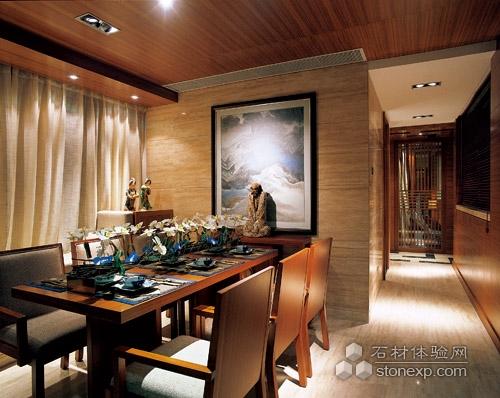 客廳在布局上用現(xiàn)代手法演繹古典韻味,在對(duì)稱均衡中尋求變化,增強(qiáng)空間層次感;在色彩上通過家私、飾品等的對(duì)比來表現(xiàn)細(xì)節(jié),使空間不顯沉悶和單調(diào);運(yùn)用現(xiàn)代材質(zhì),如玻璃、羅馬洞石、地毯、實(shí)木等的對(duì)比,既增強(qiáng)現(xiàn)代感又不失整體中式感,使整體景象的創(chuàng)造力求作到:“熟悉中有新意,協(xié)調(diào)中有變化,平淡中有味道,古典中有現(xiàn)代時(shí)尚的元素。”