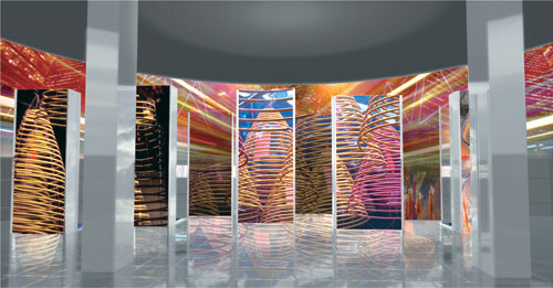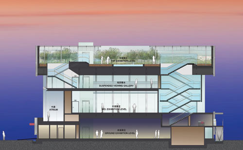 根據設計者的構思,香港館的中層會盡量通透,利用上下鏡面的反光物料制造成倒影,將建筑外的景象反射到建筑內,構成獨特的視覺效果,象征香港蘊藏的無限想象和創意空間。特區政府計劃以勝出的設計作為藍本,詳細設計和建造香港館。