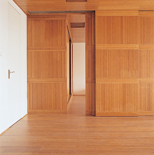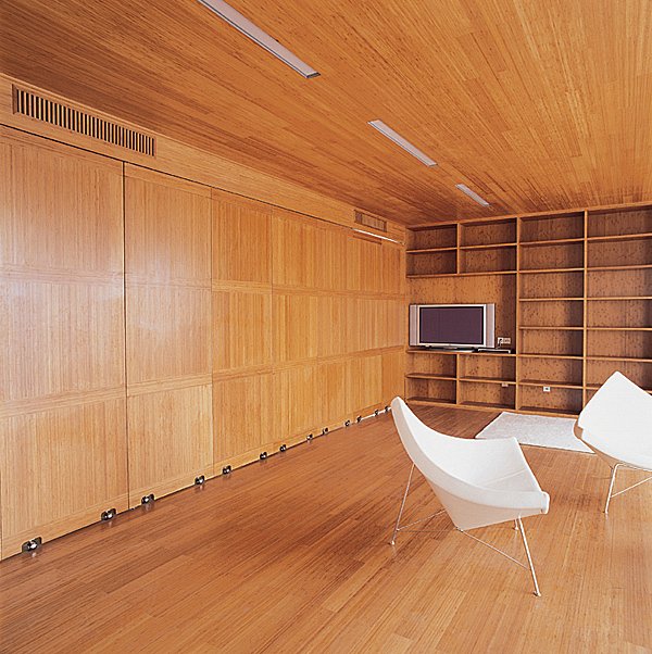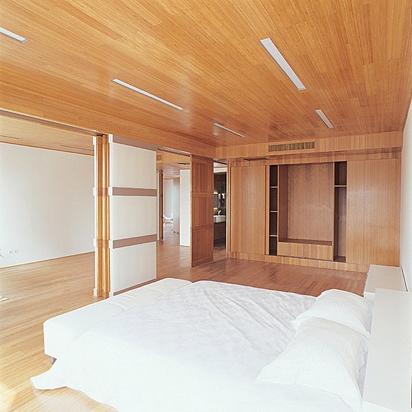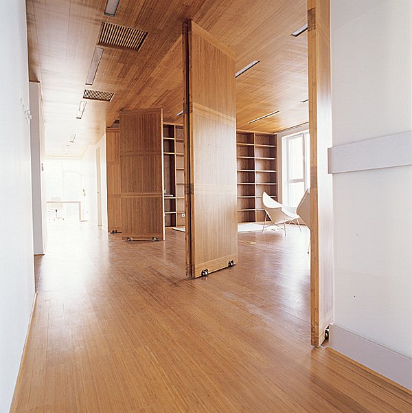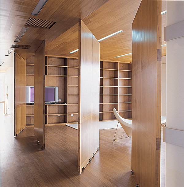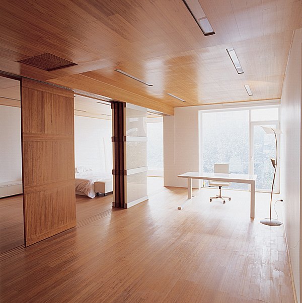 We approached the Infinite Interior project as an opportunity to explore the possibility of using bamboo-a traditional Asian building material that is both inexpensive and environmentally sustainable-in unexpected and innovative ways. The apartment unit is therefore treated as a laboratory for testing this material. Literally everything in the unit is made of bamboo, including most floors, ceilings, window coverings, furnishings, and most kitchen and bathroom appliances. We have also designed two new space-dividing systems, both made of bamboo: one is a folding partition that expands from a central node to create walls and corridors; the other is a curving partition that unrolls from a cylindrical column to create sinuous screens. These systems provide the apartment's residents with the flexibility to design their space according to changing needs.