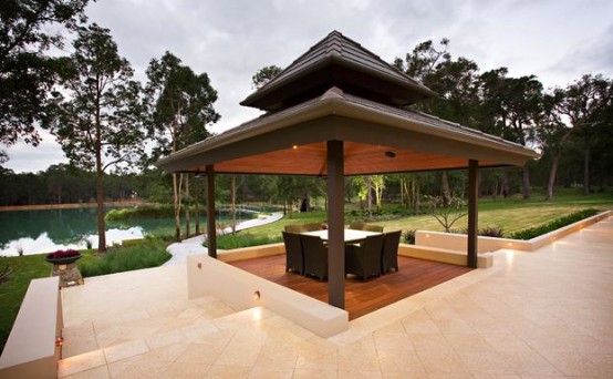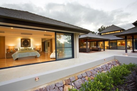 奢華的豪宅都有著令人稱奇的設計,人們也總是夢想著能住在如此奢華的豪宅,或是汲取其設計靈感運用于自己的住宅。這幢禪宗意境的豪宅便是典型的例子。幾個獨立的亭子,將一大片十英尺深的水域分割成幾個區域。水面,波光凌凌。花園庭院、健身房、水療館、游泳池等一應俱全。或開或閉的通風廊,將公共與私密區域很好的分隔開來。不像私人住宅,更賽度假勝地。