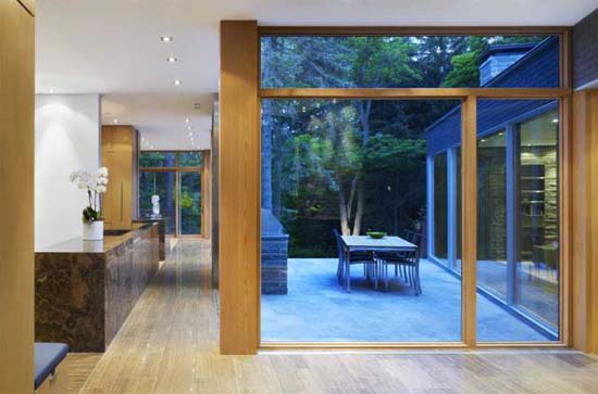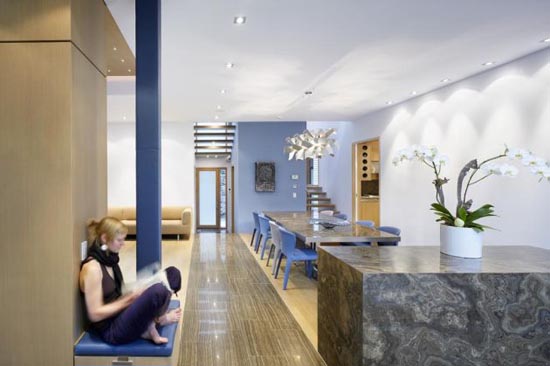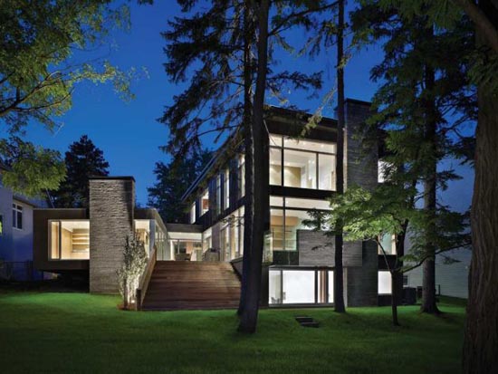 這幢住宅位于加拿大多倫多北部,由建筑師Cindy Rendely設計建造。 與鄰居們米黃色的磚塊,褐色的粉刷墻面形成鮮明的對比。里面住著一家三代,祖父、一對夫婦、他們的三個子女以及一個保姆和他的丈夫。該住宅充分利用了其峽谷地勢,照顧到了私密空間與公共空間的和諧分配,很好的體現了主人一家的生活方式、態度。