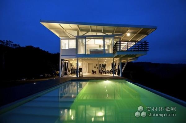 這是一座座落在哥斯達黎加熱帶叢林中的住宅,與自然合一的設計,一切都是那么自然親切.被群山環抱,被大海包圍。