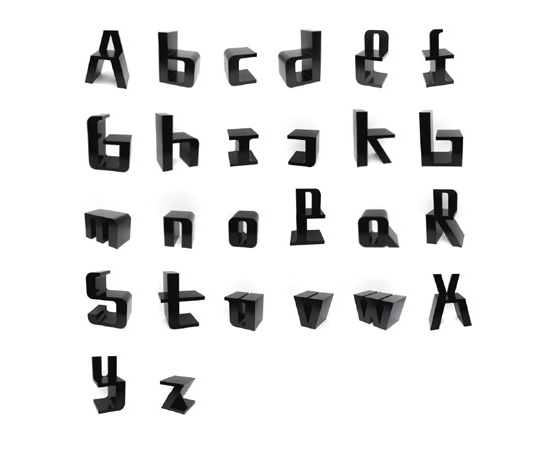 英文26個字母椅子,由荷蘭設計師Roeland Otten設計。 產品原型采用中密度纖維板(MDF)限量制造,不管是單個或組合擺放都有著很好的裝飾效果。
