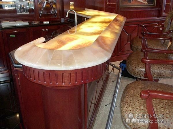 簡單描述:具有玉石特質的天然石材具有良好的透光效果,多運用于吧臺臺面,在各色燈光的照射下,光彩奪目。
