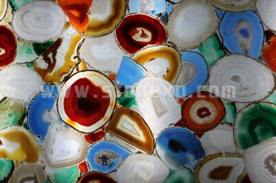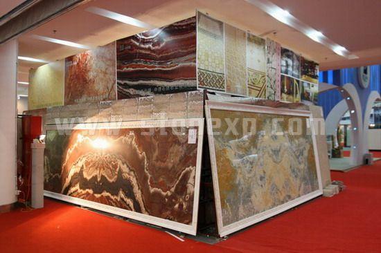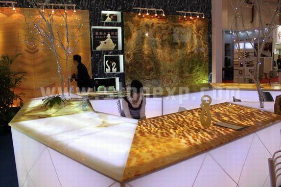 第十屆廈門國際石材展展出了各類特色石材,如特色大板,寶石拼板,及這類石材的應用