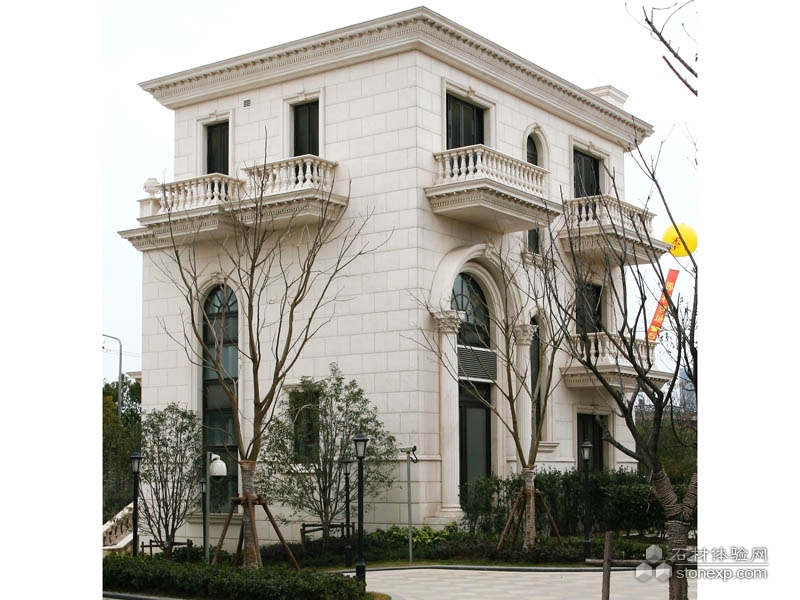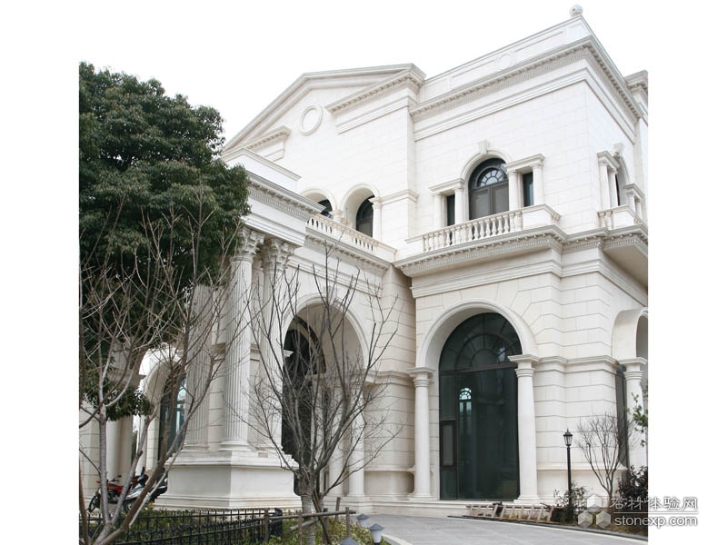 上海壹基金總部別墅由一座三層半地面建筑、兩座雙層地面建筑組成的“品”字型別墅,從上海羅山路高架上俯瞰下來顯得氣勢磅礴,猶如宮殿。別墅外觀典型的古典式對稱設計,奶白色全進口大理石立面,歐式風格的戶外燈,文藝復興氣質的彩色琉璃天窗……
