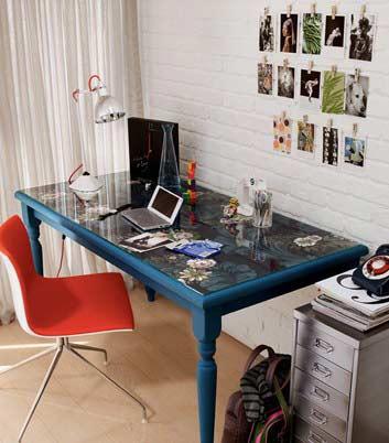 你的工作臺其實不必太大,因為你只需要安裝一塊松木板,工作臺前面的墻面就是你寫字臺的延展部分了,在那里貼上你工作的相關資料,照樣讓你輕松工作。